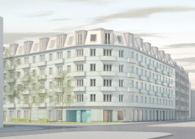 An dieser Stelle wird ein L-förmiger, westlich-südlich gerichteter, fünfgeschossiger Wohnungsbau mit 76 Wohneinheiten, Gewerbeeinheiten im Erdgeschoss und einer Tiefgarage entstehen. Der Hauptzugang befindet sich im Osten von der Friedenheimer Straße aus.