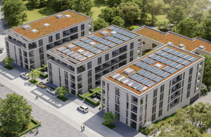 Die HKM-Bauprojektentwicklung beabsichtigt die Erstellung einer Wohnanlage mit 70 Wohneinheiten, gegliedert in drei Baukörper und einer gemeinsamen, durchgängigen Tiefgarage. Die Tiefgarage umfasst 56 PKW-Stellplätze, Fahrradstellplätze, Bewohnerkeller und Technikräume.