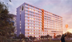 Die 616 Apartments im Haus 9 verteilen sich auf insgesamt 22 Geschosse mit einer Bruttogeschossfläche (BGF) von ca.18.600 m². Alle Appartements haben eine Kochnische, eine Fertigbadzelle mit Dusche und WC.
