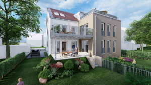 Bei dem Projekt handelt es sich um ein Mehrfamilienwohnhaus im Bestand mit 2 Vollgeschossen, ausgebautem Dachgeschoss und beidseitig stehend Einzelgaragen.